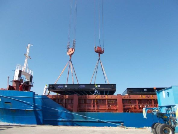 A Aveiport embarcou no passado dia 18 de Março no navio Nordersand mais uma Carga de Projecto. As duas peças, portas de eclusas de uma barragem, com um peso unitário de 75,9 toneladas, tem como destino Radicatel - Região Le Havre em França foram fabricadas pela empresa PEMEL (Omatapalo Group), que instalou no terminal portuário um estaleiro para assegurar a montagem final e acabamentos das peças. A operação foi preparada com meses de antecedência em articulação com a Administração Portuária, a PEMEL, o cliente final, os transportes especiais a cargo da LASO e a agência de navegação do grupo ETE - Navex, passando pela organização da área de estaleiro, planos de segurança, higiene e ambiente, handling das peças à prumada do navio e plano de lifting para embarque. #projectcargo #portodeaveiro #grupoete #navex #pemel #laso